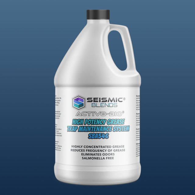 Activ8 Bio High Potency Grease Trap Maintenance System is a powerful liquid digestant designed for tough organic waste in commercial drainage systems. Using a concentrated mix of enzymes and five bacterial strains, it breaks down grease, starches, and complex waste materials while neutralizing foul odors with a fresh mint scent.