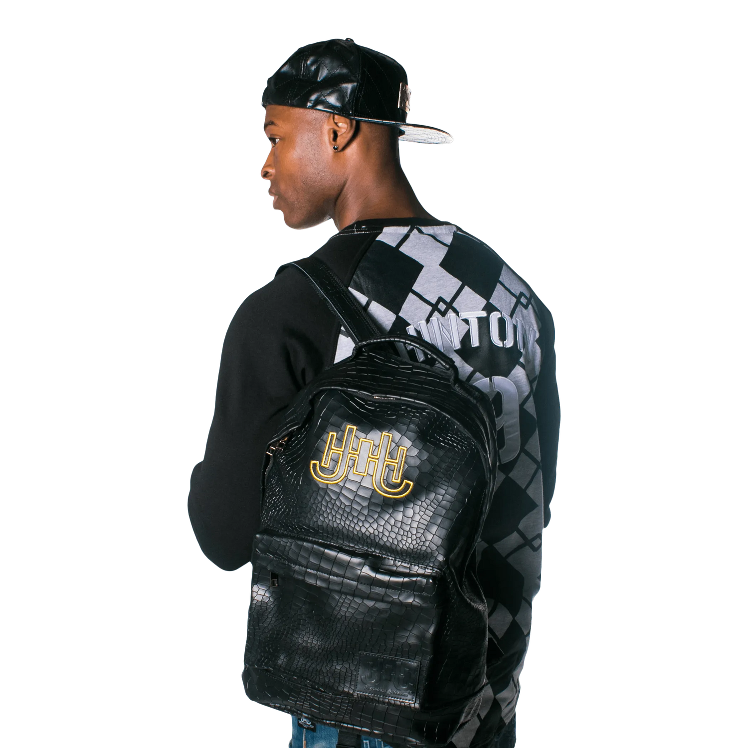 Head out looking fire with this premium Crocodile-embossed leather backpack. Combining a huge serving of luxury with functionality, this croc-embossed backpack will be your everyday favorite. With our logo embroidered at the front and finished with antique effect silver-tone hardware, this is the kind of backpack that makes them turn around to take a look